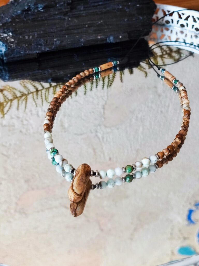 Naszyjnik z Jaspisem Krajobrazowym, Larimarem i Turkusem „Ksante I” – wyciszenie, spokój
