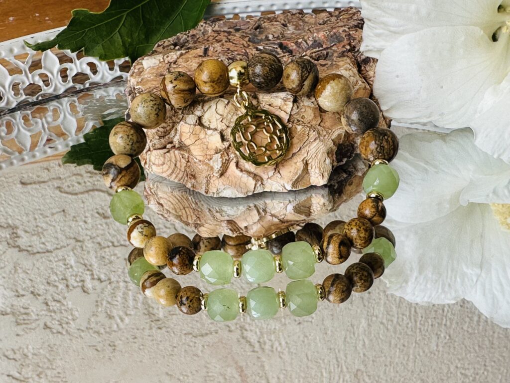 Bransoletka z Jaspisu Krajobrazowego z Prehnitem „Eira II” pełen relaks